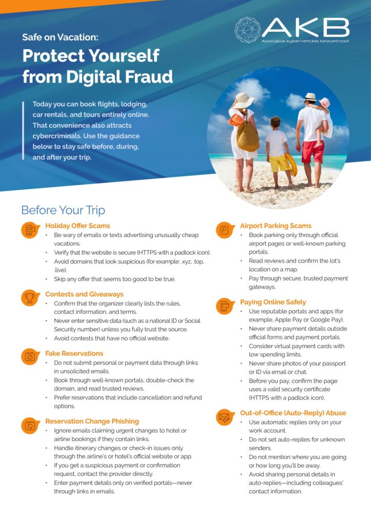Leták Ako sa chrániť pred digitálnymi podvodmi na dovolenkách