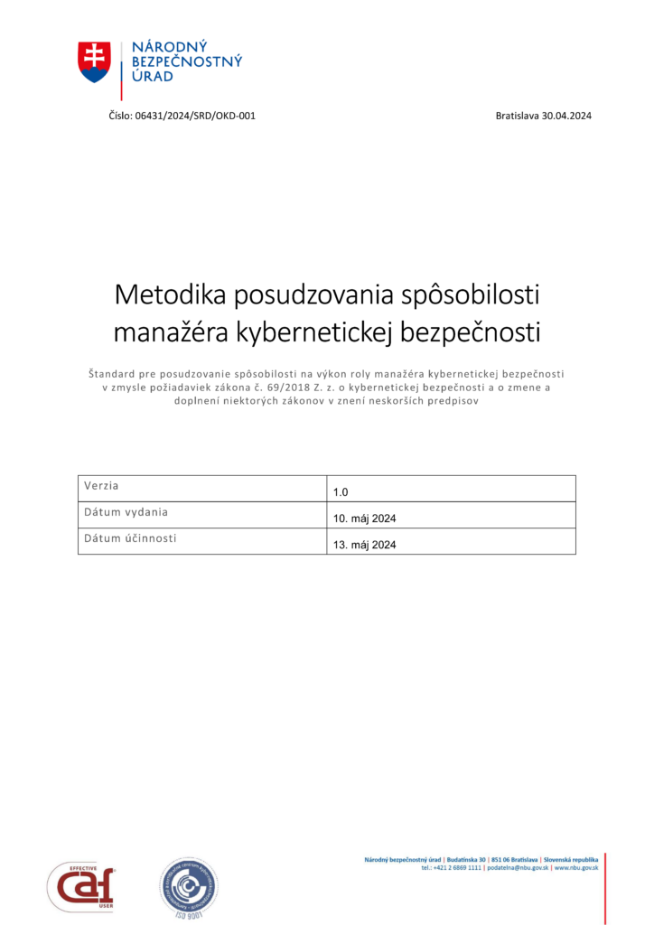 Štandard NBÚ pre posudzovanie spôsobilosti na výkon roly manažéra kybernetickej bezpečnosti v zmysle požiadaviek zákona č. 69/2018 Z. z. o kybernetickej bezpečnosti